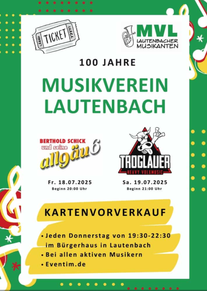 - 18:00 Uhr Eröffnung durch die Lautenbacher Musikanten